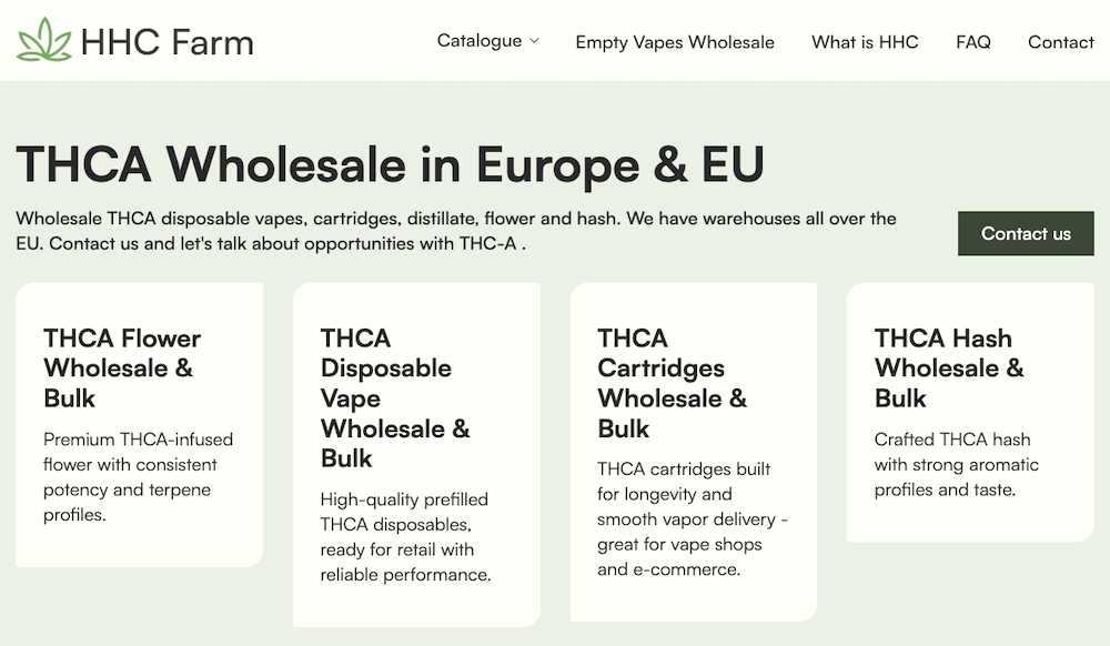 Plusieurs détaillants en ligne commercialisent des produits contenant des substances intoxicantes du chanvre dans toute l’Europe, notamment des fleurs de THCA, des vapes, des produits comestibles et des concentrés très puissants.