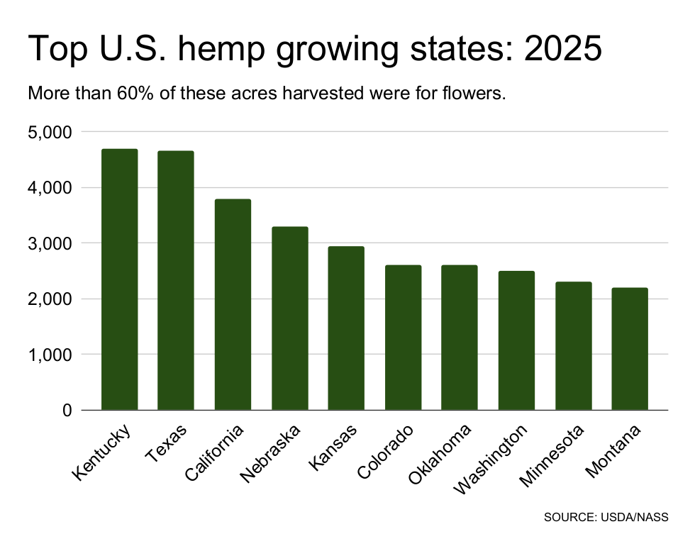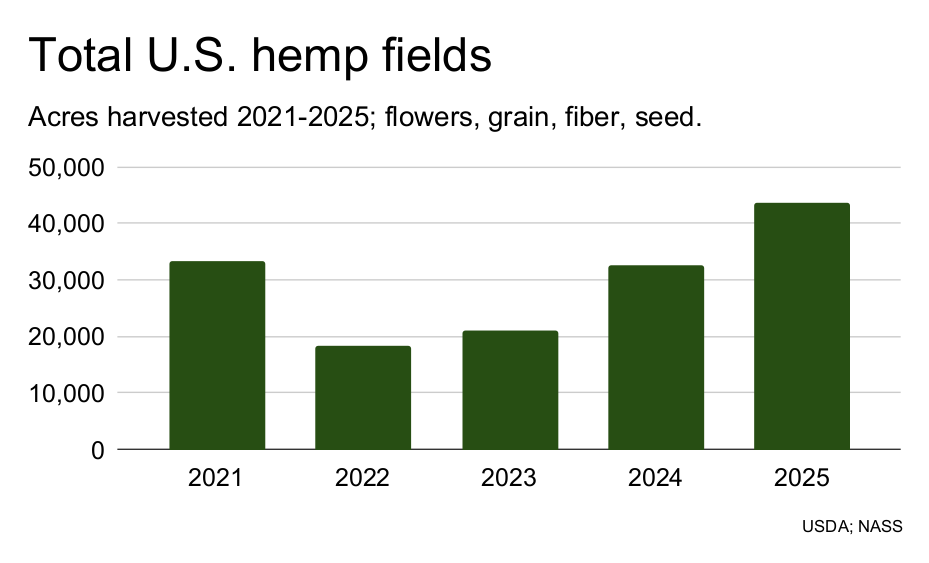 Tout cela s’inscrit dans un secteur cannabinoïde qui domine toujours l’économie de l’industrie mais qui semble de plus en plus instable. En 2025, les fleurs représentaient environ 64 % de l’augmentation de la valeur totale du chanvre, tout en contribuant à environ 46 % de la croissance totale de la superficie cultivée. Ces gains, cependant, sont largement liés aux produits enivrants dérivés du CBD – un marché échappatoire qui a faussé les prix, les chaînes d’approvisionnement et les décisions de plantation.